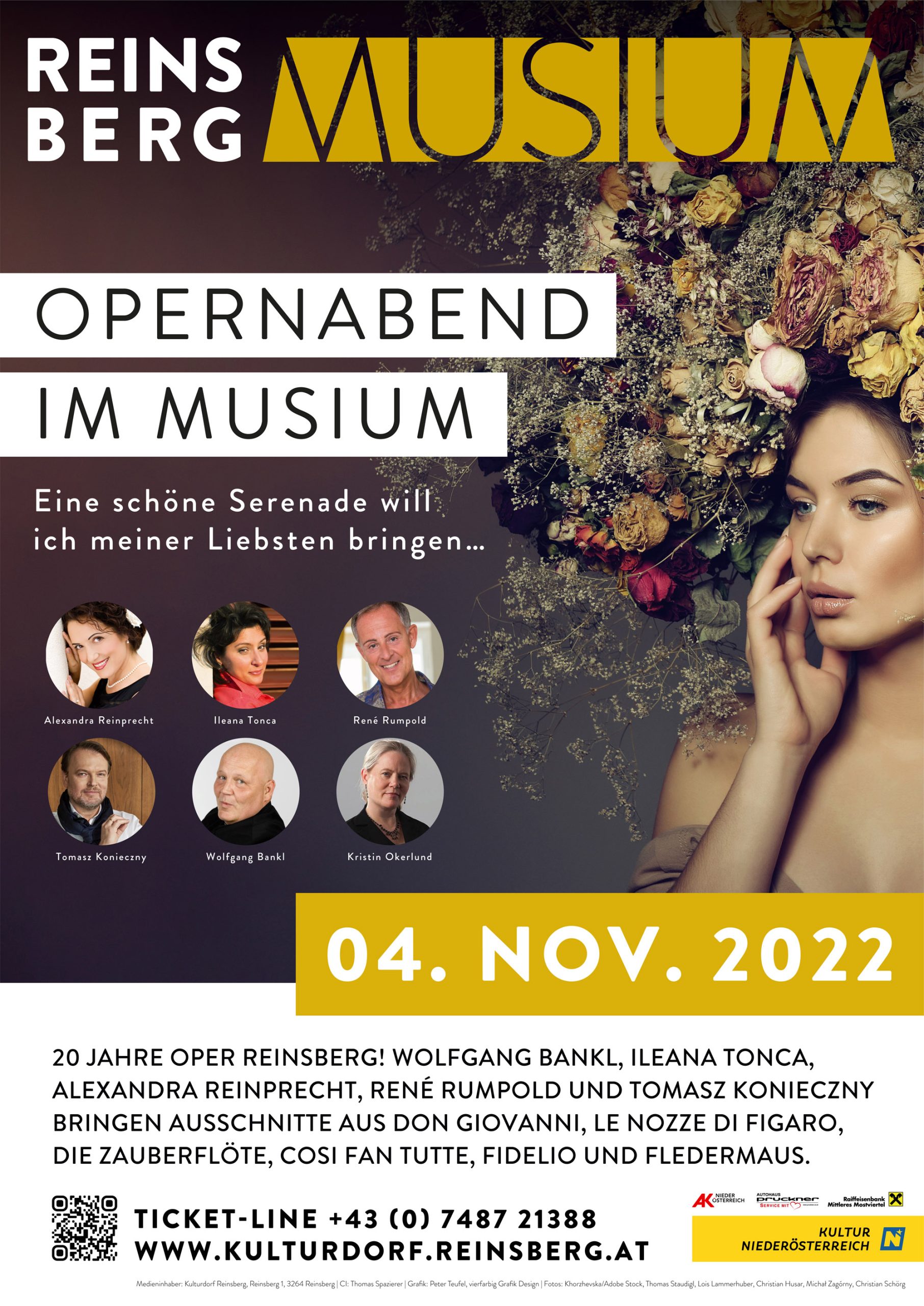 In einer spontanen musikalischen Zusammenkunft lassen einige ProtagonistInnen von damals die Oper Reinsberg wieder aufleben und laden gemeinsam mit dem Kulturdorf zu einem Arienabend voller nostalgischer Erinnerungen. Kammersänger Wolfgang Bankl, Ileana Tonca, Alexandra Reinprecht, René Rumpold und Tomasz Konieczny bringen Ausschnitte aus Don Giovanni, Le Nozze di Figaro, Die Zauberflöte, Cosi fan tutte, Fidelio und